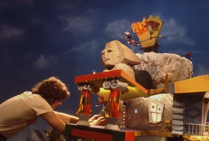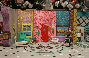 'Pee-wee Herman, comedian Paul Reubens' (RIP) signature character, is the titular protagonist of Pee-wee's Playhouse. He is the owner of the playhouse. He is a zany, childlike fellow with a pomaded crew-cut, a too-small gray suit, a bow-tie, a high, nasal voice, and a frenzied manner. His playhouse boasts oddball characters and talking furniture and he likes to ride his bike and cook, whipping up such delights as Ice Cream Soup.